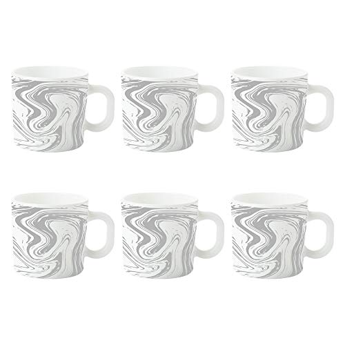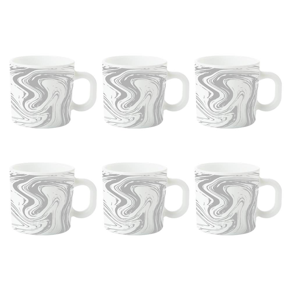 Larah by BOROSIL Marble Opalware Tea/Coffee Mug Set of 6 pcs 180 ml Each | Microwave & Dishwasher Safe, Bone-Ash Free | Crockery Set Ideal for Daily Use & Gifting, White