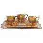 • Shiv Shakti Arts Pure Brass Engraved Flowers Deigner Tray with Tea Cup With Sauce Set - For Gifting Diwali New Year7 piece set.