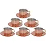 Shiv Shakti Arts® Pure Copper Tea Cup and Saucer Set Hammered Design 6 Piece set(150 ml CopperBrown) New Year Diwali Gift Item