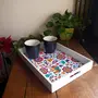 BIJNOR - METAL INLAY IN WOOD Serving Tray | India Design with White Border | Rectangular 10" x 14" Wooden Tray for Serving | Tray for Decoration with Cut-Out Handles