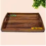 KHURJA POTTERY 'Madhubani Fishes' Wooden Tray for Serving in Sheesham Wood Serving Tray for Kitchen (Rectangular Brown)