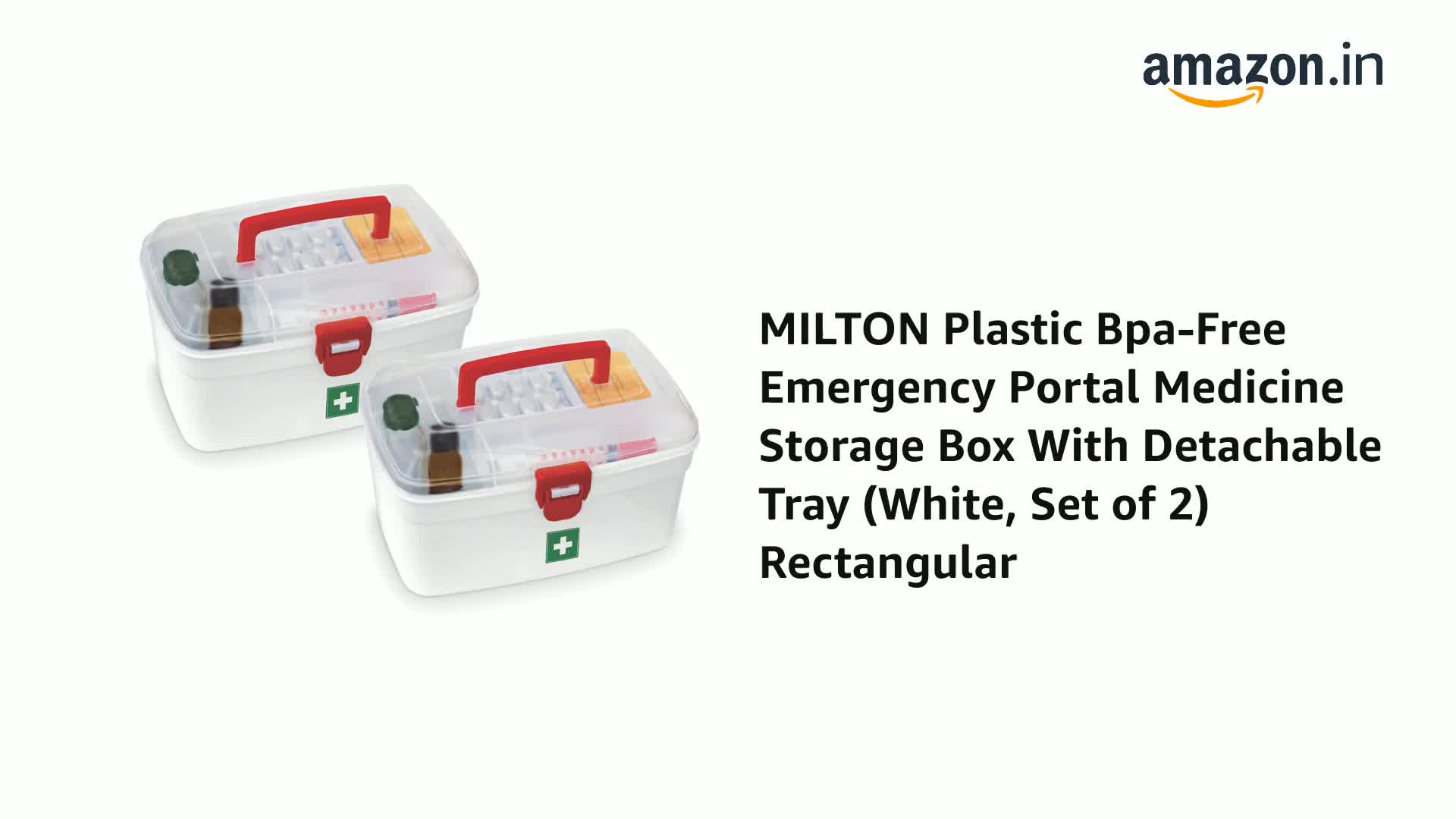 MILTON Plastic Bpa-Free Emergency Portal Medicine Storage Box With Detachable Tray (White, Set of 2) Rectangular