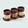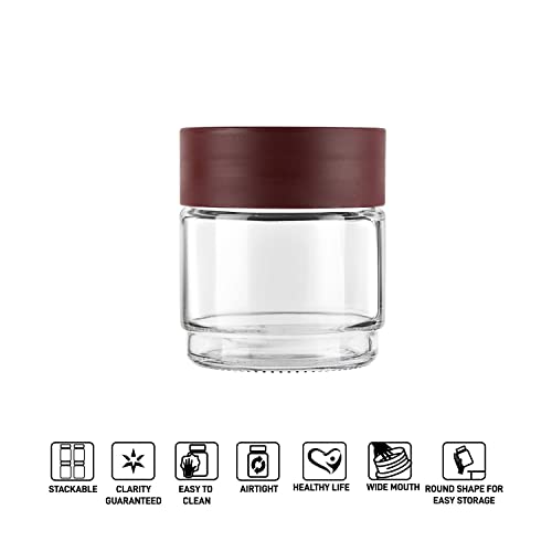 CELLO Modustack Glassy Tray Set | Glass Jar with Lid & Tray | Air Tight Steel Lid and Stackable | For Storage of Food, Pulses, Spice, Cereals, Cookies, Dry Food | Set of 3 | 500ml, Maroon