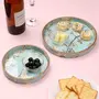 SAHARANPUR HANDICRAFTS Set of 2 MDF Wood Trays Enamel Coated| Round Trays Set of 2 | Serving Trays | Wooden Tray | Kitchen&Dining Decorative | Resin Tray | Handmade | 7x7 & 9x9 inches (Setof2Round- AquaGoldBirds)