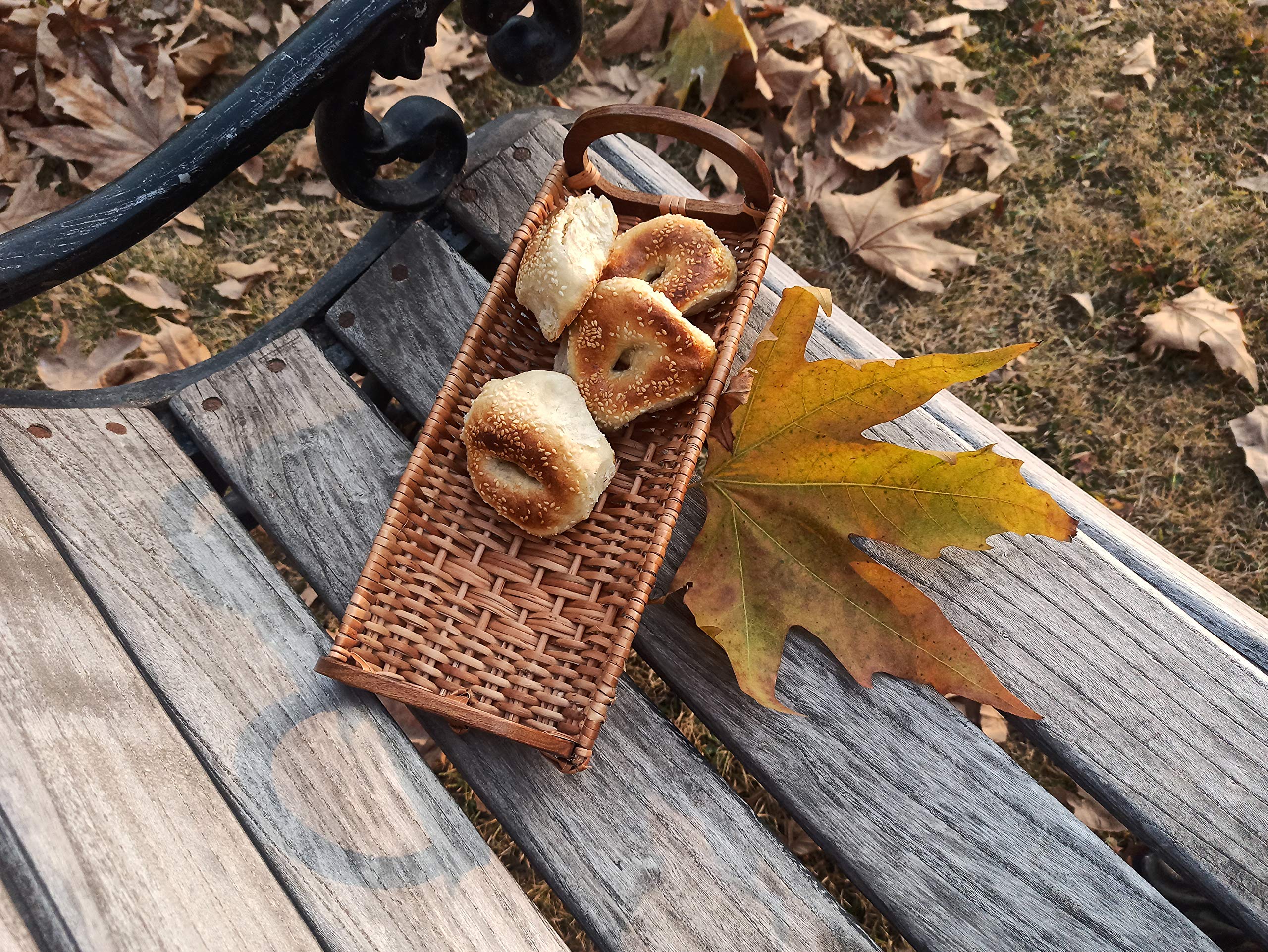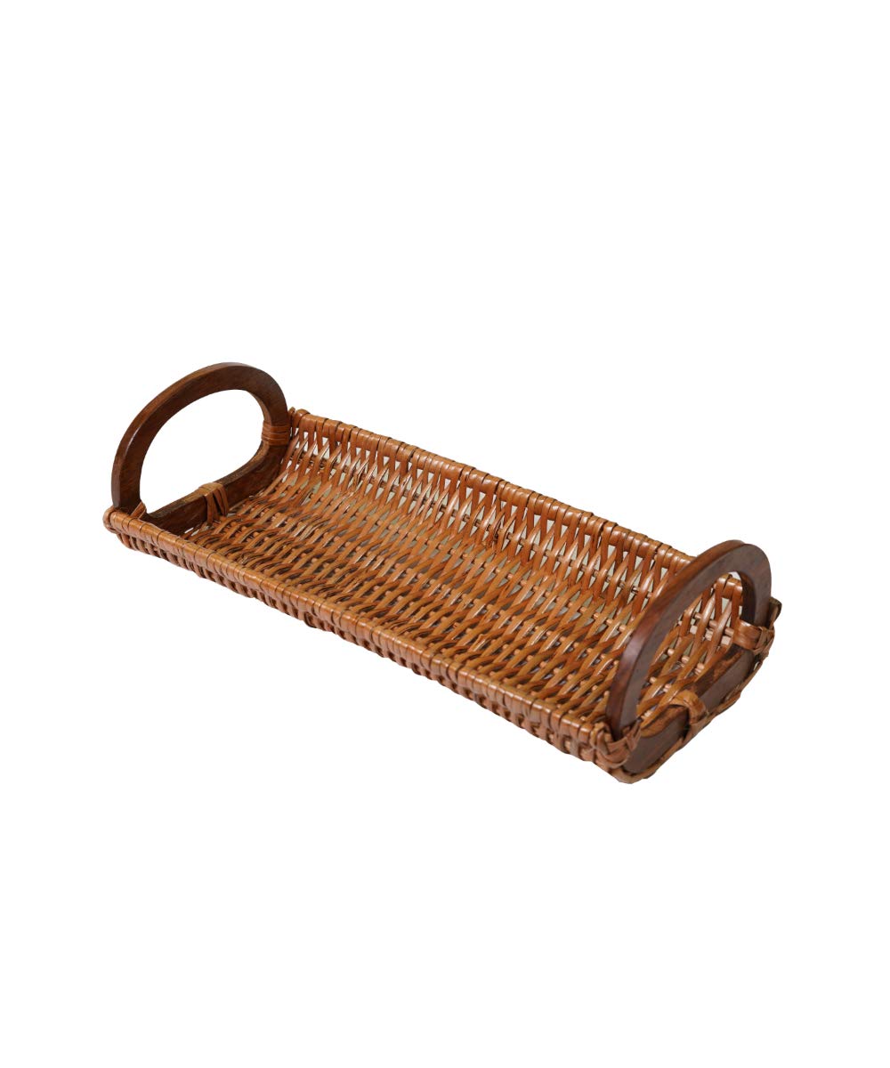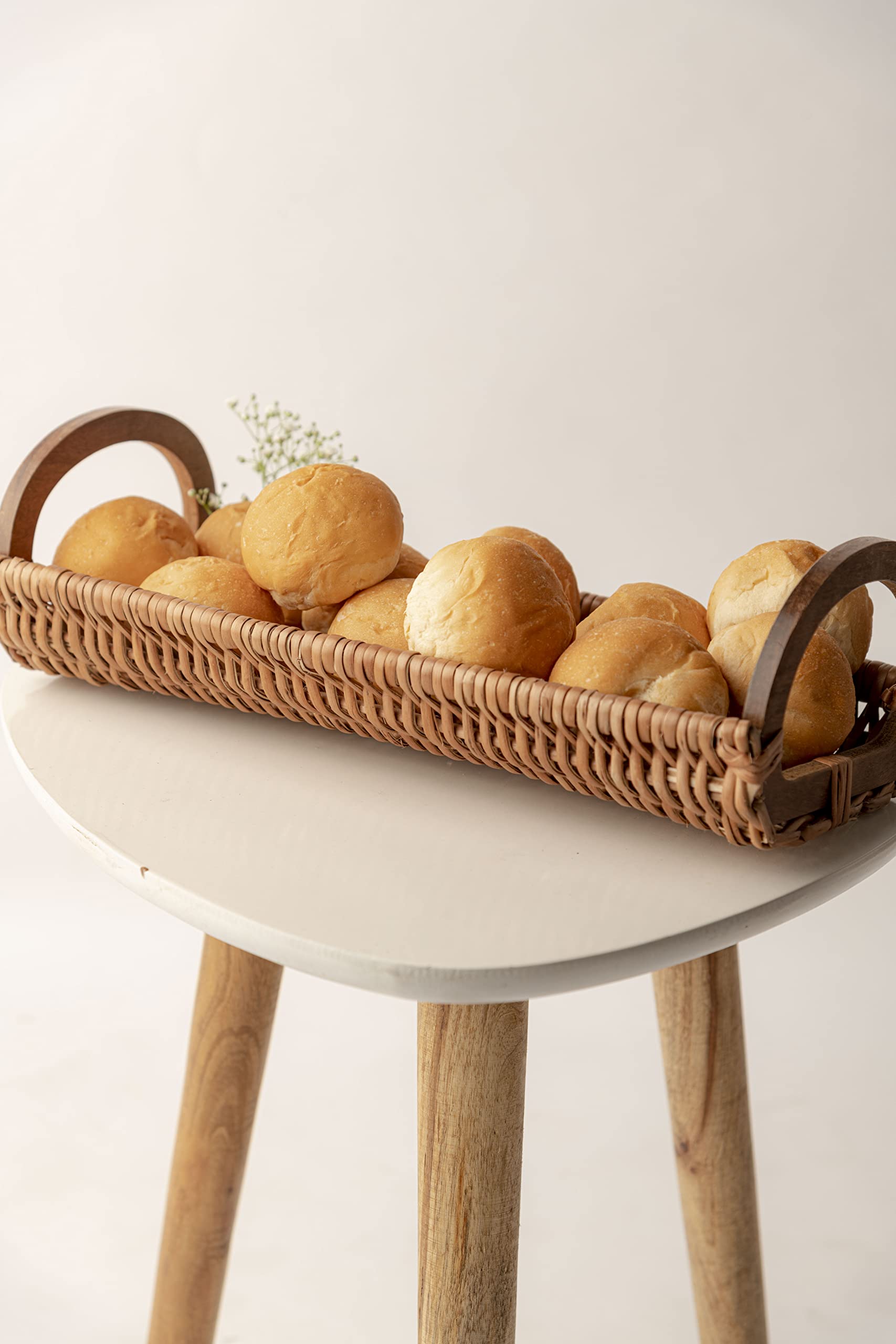 SIKKI CRAFT Handmade Wicker Bread Tray with Handles | Kitchen Counter Top Storage Tray Decorative Tray | Home and Restaurants for Serving Snacks Breads and Appetizers (Brown)