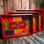 TERRACOTTA POTTERY OF RAJASTHAN brings to you an Exquisite Indian Traditional Wooden Tray Set that will surely help you create a WOW factor experience in front of your guests. It is beautifully handcrafted by the abled craftsman of Rajasthan India. The founders of TERRACOTTA POTTERY OF RAJASTHAN vowed to make a difference to the lives of thousands of local craftspeople & artisans thereby creating a global marketplace for them. With every purchase you make through TERRACOTTA POTTERY OF RAJASTHAN you contribute to the development and promotion of the rich heritage of our country. Features (a) Beautifully handcrafted & handpainted by the abled craftsman of Rajasthan India. (b) Brings Exquisite Indian Traditional Wooden Tray Set to your table. Fits perfectly on auspicious occasions. (c) Ideal for gifting purpose. Gives a great aesthetic feel. (d) Durable & Long Lasting. Can be used as Decoratives as well. Form Of Art: Ethnic Rajasthani Traditional Art Material Used: MDF Disclaimer (a) Cup & Tea Coasters used in the photographs are not included in the set. (b) Since it is handcrafted & handpainted slight color & design variation is bound to happen that inturn distinguishes the product & art. Package Includes: One Handcrafted & Hand-Painted Embossed Wooden Serving Tray Large. ( Tea Coasters is a separately purchasable Product)