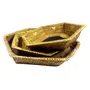 WOOD CARVING WORK Golden Grass Hand-Woven Diamond-Shaped TRAY SET - a Set of three in decreasing order (Odia coastal handicraft); beautiful ethnic table dcor item; ideal for gifting purposes