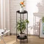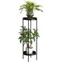 WROUGHT IRON CRAFTS Metal Plant Stand for Flower Pot Large Plant Stands Potted Holder Outdoor 2 Tier Plants Display Rack Shelf Double Tray Garden Round Supports for Planter (Pack of 1 Black)