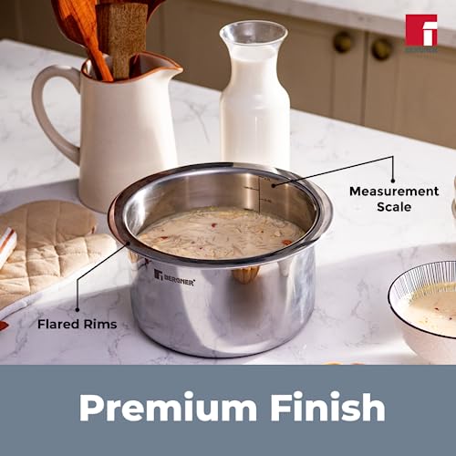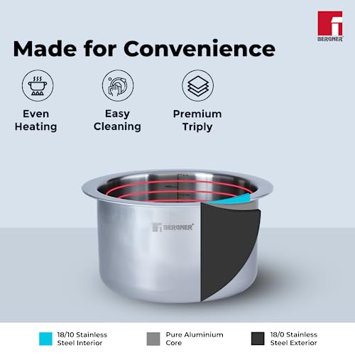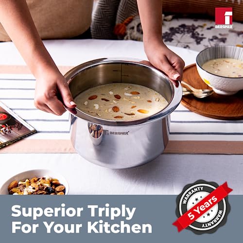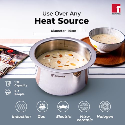Bergner Argent TriPly Stainless Steel 16cm (1.9 L) Tope with Stainless Steel Lid, Small Topia/Patila with Stainless Steel Lid, Healthy, Non-Toxic, Food Safe, Durable - Induction and Gas Stove Ready