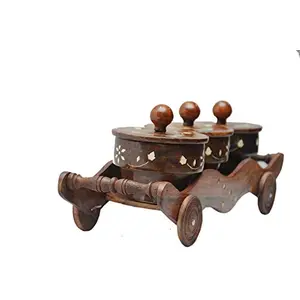 Set of 3 Wooden Bowl with Trolley...