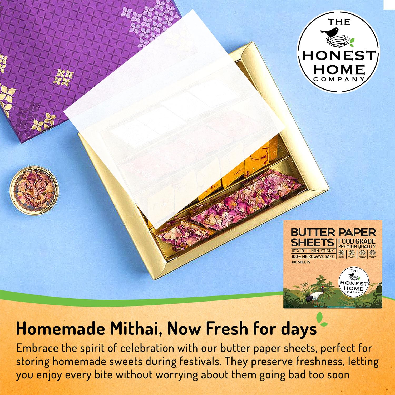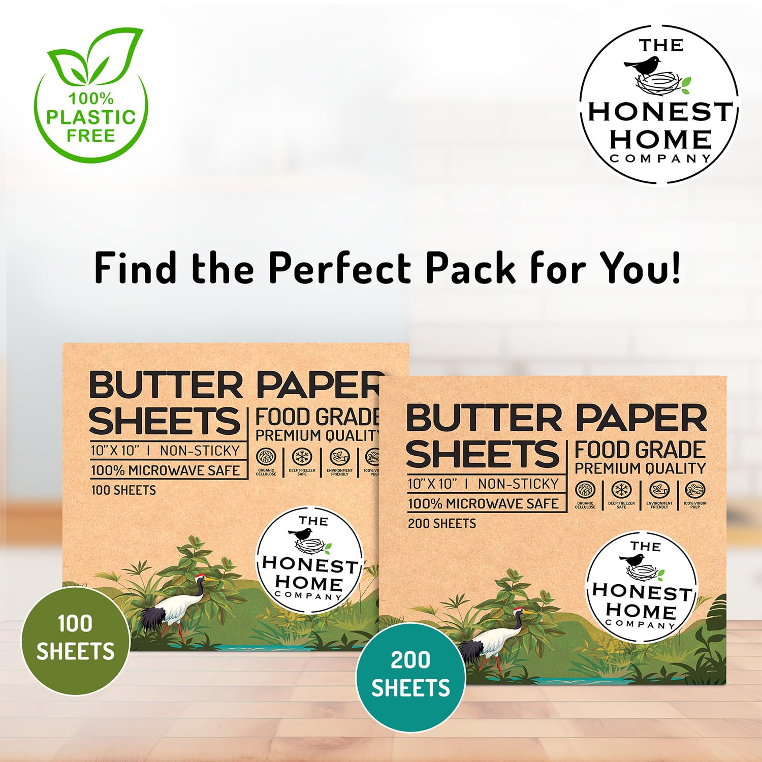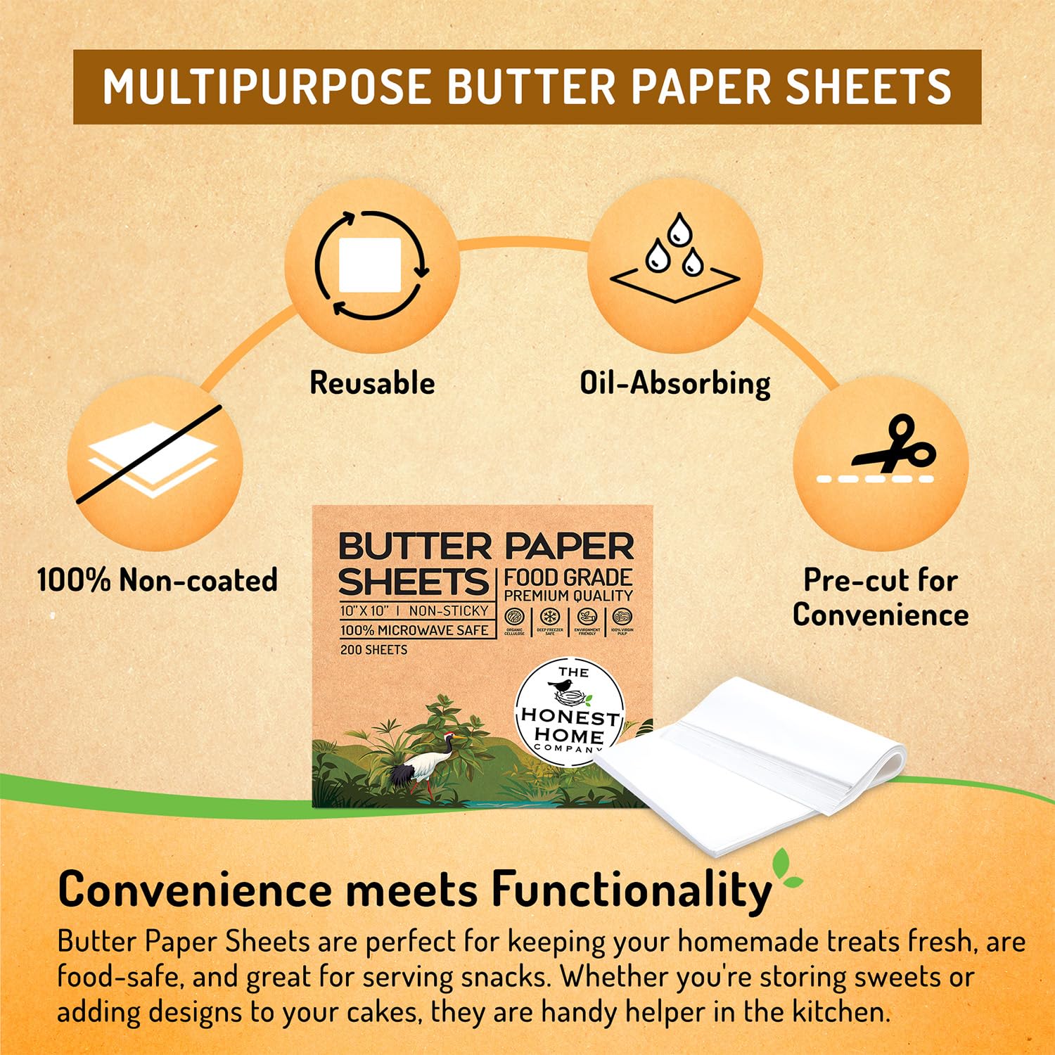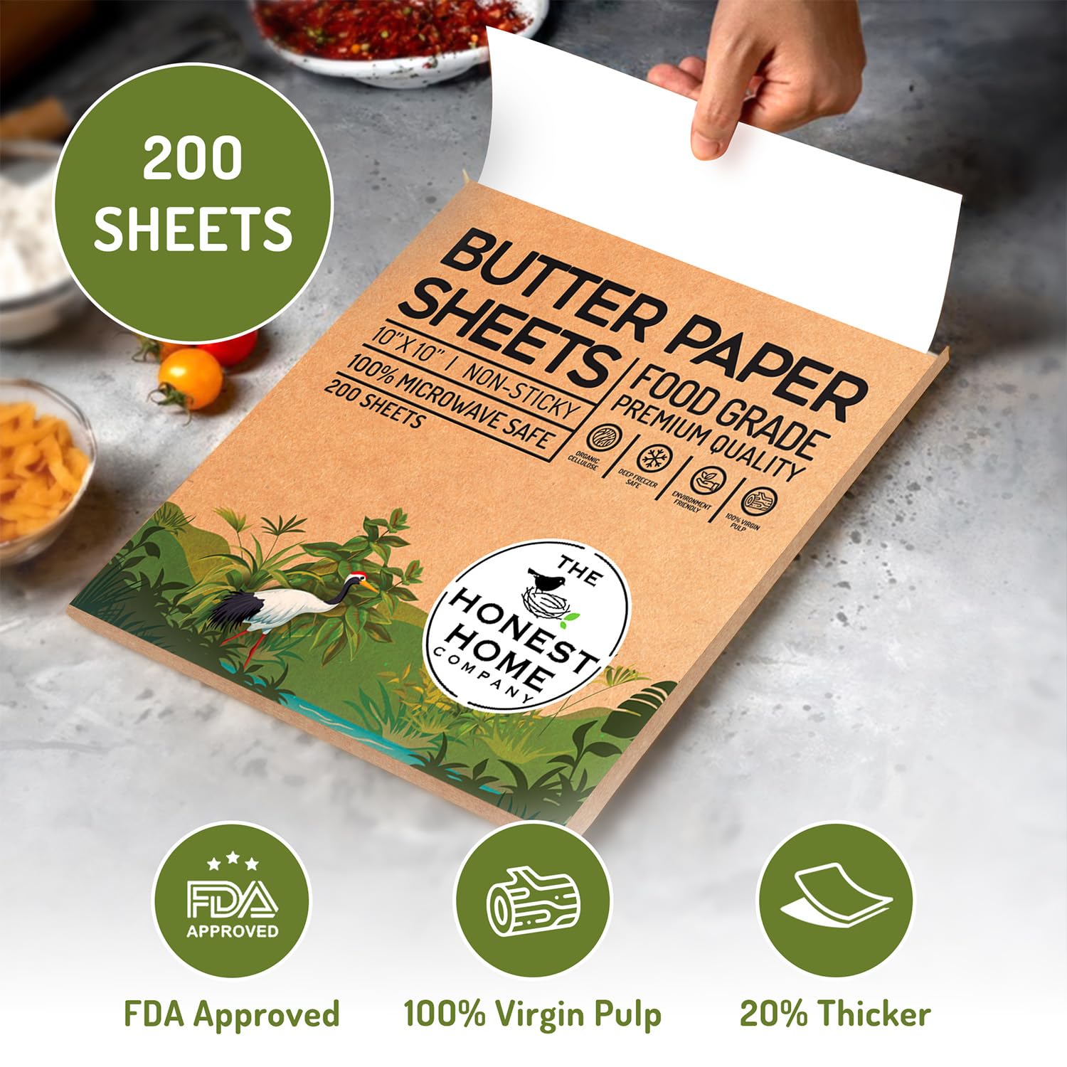 The Honest Home Co. | 200 Butter Paper Sheets 40 GSM | 10x10" | 100% Non - Coated | FDA Approved