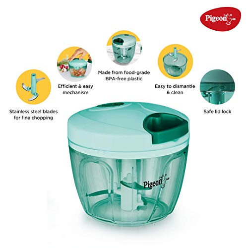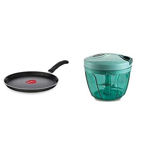 Size:27cm | Pattern:Tawa + Chopper LPigeon by Stovekraft Special Non-Stick Aluminium Flat Tawa Black (27cm)Prepare Tasty Dosas Omelettes Rotis and More: Pigeon non-stick tawa is great for making delicious dosas rotis omelettes and more. With its non-stick formula this is a perfect tawa for beginners. You can cook hassle-free without creating any mess. It is a versatile cooking vessel that lets you roast simmer and saut. It helps you prepare variety of food items without any trouble. It very durable as it is made of aluminium and coated with greblon - which was originally engineered in Germany. Due to this the tawa is scratch-resistant and non-stick. The non-stick coating ensures that you use minimal oil and also helps you cook without burning the food. Sturdy Design for Better Cooking Experience: Pigeon tawa is designed to endure high temperatures hence helps in better cooking of food. The handle is heat resistant so you wont have a problem handling the tawa even when it is hot. The spiral bottom helps in evenly distributing heat across the tawa for consistent cooking. Scratch-resistant surface lets you use metal spoons as well. Easy to Clean and Maintain: Pigeon tawa is an ideal kitchen vessel not only due to its versatility but also its ease of maintenance. As it is a non-stick tawa the oil does not form any hard layer making it easy to clean it. A soft sponge with some soapy water is enough to get the greasiness off. Additionally because of its scratch-resistant coating you can use metal spoons without peeling the external coating off.Pigeon by Stovekraft Large Handy and Compact Chopper with 3 blades for effortlessly chopping vegetables and fruits for your kitchenThe Pigeon New Handy Chopper is an excellent affordable solution to all of your fruit and vegetable chopping needs. Featuring three sharp and durable stainless steel blades and a unique string design this manual chopper chops and cuts vegetables in a hassle-free manner with minimal effort. Simply cut the fruits or vegetables to a medium size before placing them in the chopper and get an evenly chopped version for your salads fruits sabzi preparations and other cooking purposes.
