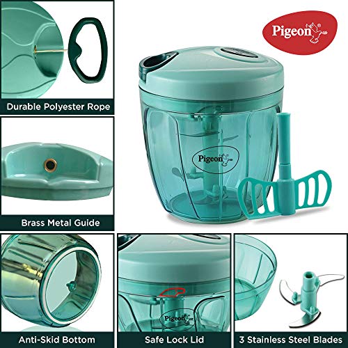 Pigeon Vegetable Chopper | Handy and Compact Manual Food Chopper with Stainless Steel Blades | 0.9 Liters |Large Hand Powered| Onion Chopper | Vegetable Cutter | Veggie chopper | Pull Chopper