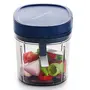 • Use: Ideal capacity of 900ml that is compact to use and store. Non-slip silicon base. Perfect for cutting onions garlic tomatoes vegetables salads herbs fruits boneless meat nuts and more in seconds.Unique string function to chop vegetables and fruits wit