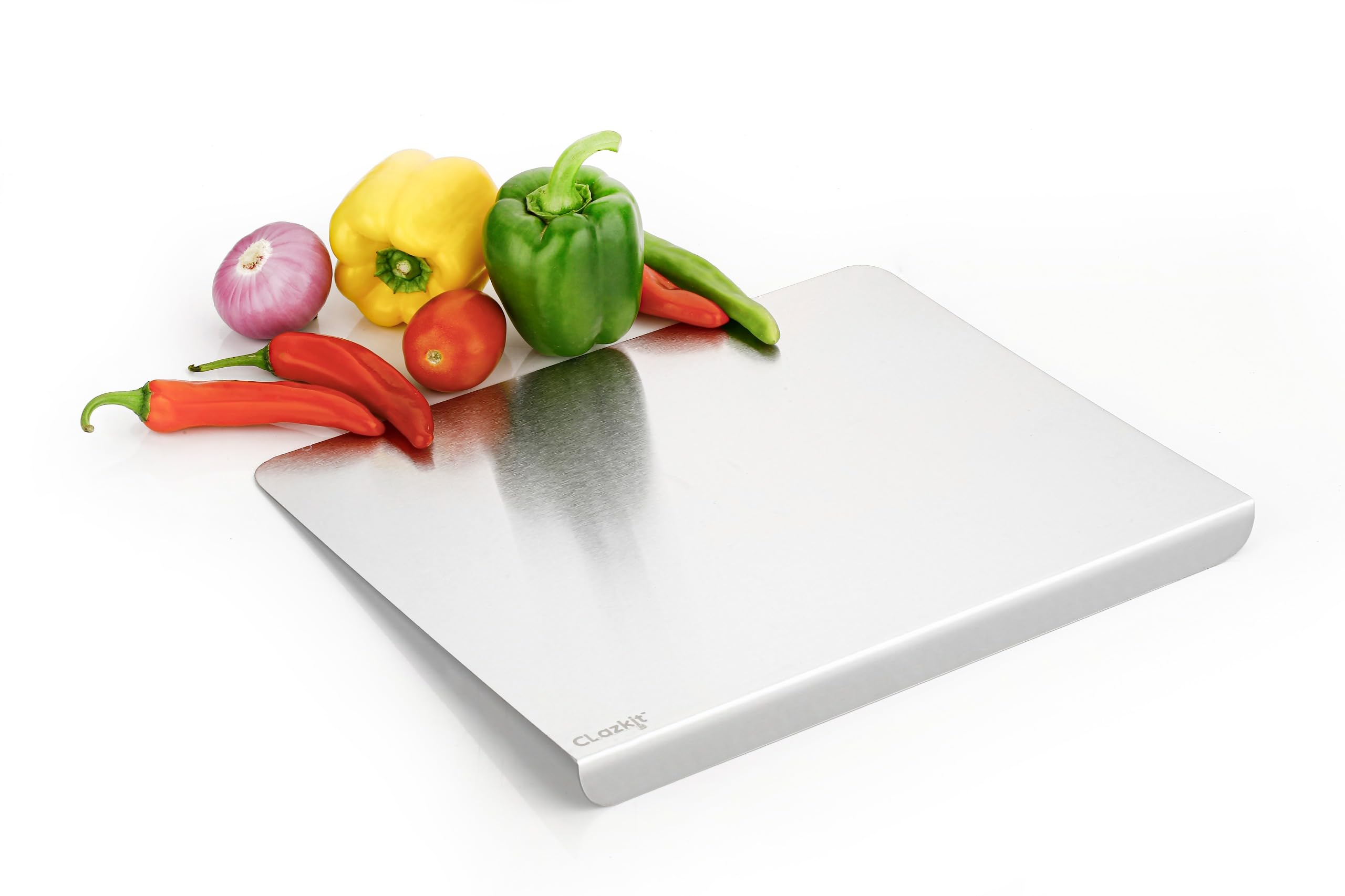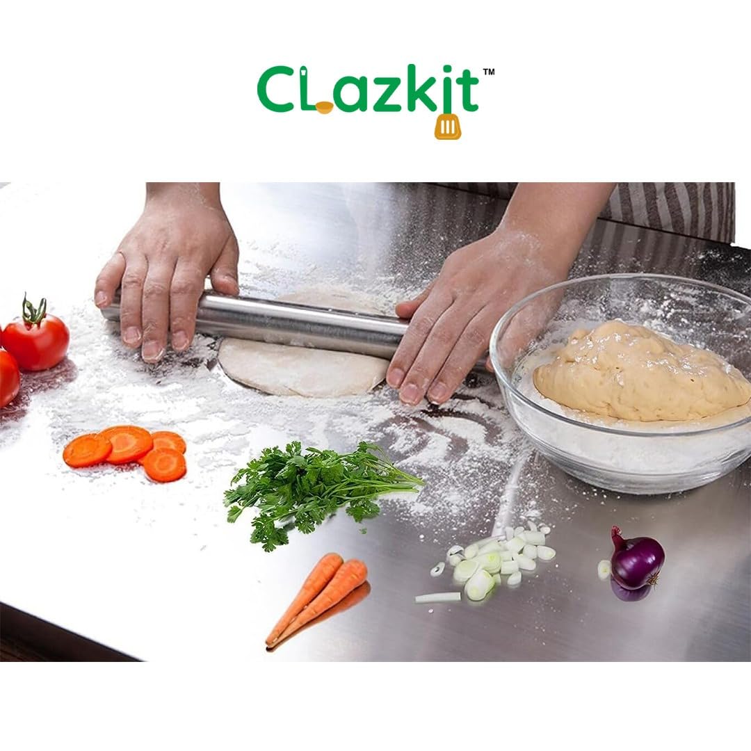 Introducing our Clazkit Stainless Steel Chopping Board - the epitome of durability hygiene and elegance in your kitchen. Crafted with precision and designed for both professional chefs and home cooks this cutting-edge chopping board is an indispensable tool for your culinary adventures. Key Features: Unmatched Durability: Constructed from high-grade stainless steel this chopping board is engineered to withstand the test of time. It resists corrosion stains odors and is sure to endure the daily rigors of chopping slicing and dicing. Hygienic and Non-Porous Surface: The non-porous surface of our stainless steel chopping board prevents the absorption of liquids odors or bacteria ensuring a consistently clean and safe food preparation environment. Knife-Friendly Surface: The smooth and non-abrasive surface of the stainless steel board protects your knives from dulling keeping them sharp and ready for precise cutting tasks. Easy to Clean and Maintain: Effortlessly maintain a spotless kitchen with this easy-to-clean chopping board. Simply wipe down the surface with a damp cloth or wash it with mild soap and water. The stainless steel material is also dishwasher safe for your convenience. Versatile Design: The sleek and modern design complements any kitchen aesthetic making it an attractive addition to your cooking space. Its versatile size and design make it ideal for various food preparation tasks from chopping vegetables to slicing meats. Built-In Stability: Equipped with non-slip silicone feet this chopping board offers excellent stability during use ensuring a safe and steady cutting surface. Invest in the best with our Clazkit Stainless Steel Chopping Board - a kitchen essential that promises longevity hygiene and impeccable functionality for all your culinary endeavors. Elevate your cooking experience and bring a touch of sophistication to your kitchen with this exceptional chopping board.