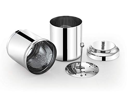 Product Description Backed by rich industry experiences; we are highly engaged in offering a premium quality range of Stainless Steel Coffee Filter By Expresso Coffee . "Making a perfect cup of filter kaapi is an art that's perfected over time" - South Indian Mothers! Instructions to Make Filter Coffee with Stainless Steel Coffee Filter: Filter coffee is brewed using a coffee filter which has two cylinders. Top Cylinder contains Pin holes. The idea is for the ''decoction'' to drip down from the top cylinder through the tiny pin holes into the bottom cylinder. 1. Take and fix the upper cylinder with pin holes onto the lower cylinder. 2. Add 2-3 table spoons of Expresso coffee powder to the upper compartment with the umbrella attachment press down the powder. 3. Bring the water to a boil and pour boiling hot water over the umbrella in the upper compartment until water level nearly reaches the brim. 4. Keep this covered for 1 Hour until thick coffee decoction drips into bottom compartment. 6. To prepare coffee bring milk to a boil. 7. Pour 4-5 tbsp coffee decoction with 3/4 cup milk sugar back and forth in a Davara Tumbler (Available at our online store) in an arc like motion adjusting as per the strength of coffee desired. 8. Serve the popular South Indian coffee. Filter coffee is the life-blood of South Indians. It Is called by names: Indian Coffee Filter Coffee Degree Coffee Decoction Coffee Chicory Coffee Breakfast Coffee Chikmagalur Coffee Milk and Sugar Coffee Brown Coffee.
