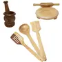 For those who love to cook, BuzyKart presents this beautifull Wooden Kitchen tools Set. BuzyKart Traditional Hand Carved Cooking Accessories, Out Of Best Quality Long Lasting Processed Natural Wood. Unmatchable Elegance Adorning Your Lifestyle . It Reflects On That Artistic Side Of You And Dwells In Perfection Of Artistic Work. Add It To Your Kitchen Accessories Before You Regret Losing It To Others..it Contains 3 Cooking Spoons, one rolling board, one rolling pin, one mortal and one pestle. Which Can Be Used For Different Purposes. Perfect For Serving Meals, Our Set Of 3 Piece Cooking Spoon Wooden Ladle Features A Soft Handle For Comfort And Ease Of Use Whilst Handling. The Wooden Curve Spoon Is Ideal For Serving Variety Of Dishes. With A Hole In The Handle That Can Be Hung Over A Hook Out The Way, Our Set Of 3 Piece Cooking Spoon Wooden Ladle Can Be Stored Efficiently To Keep Your Kitchen Surfaces Neat And Organised. Wash them carefully with soft and smooth scrubbers to avoid scratches.