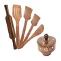 Wooden Handicrafts 1 Bowl, 4 Cooking Spoon, 1 Rolling Pin, Pack Of 6