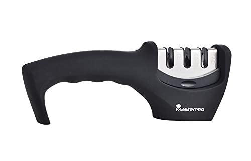 BERGNER Master Pro Stainless Steel Knife Sharpner for Kitchen 3-Stage Sharpening System Standard (Black)