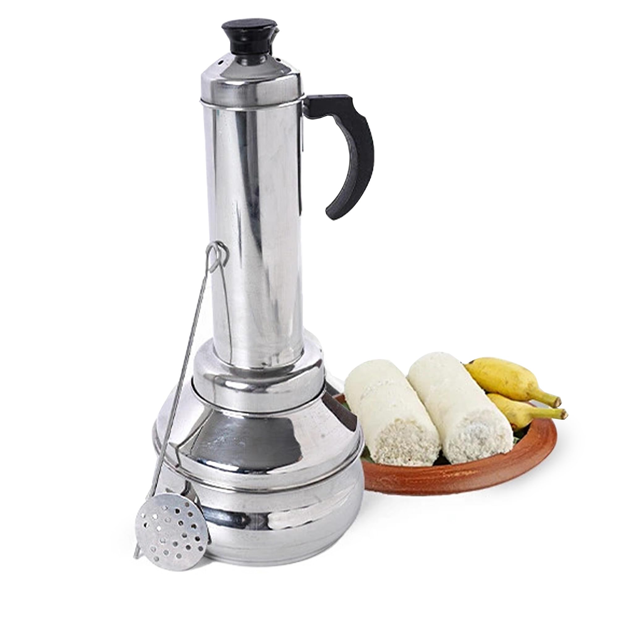 The Indus Valley Stainless Steel Puttu Maker With Bakelite Handle |1.3 L 0.46Kg Gas & Induction Friendly |100% Toxin-Free Naturally Non-Stick Long Lasting Silver