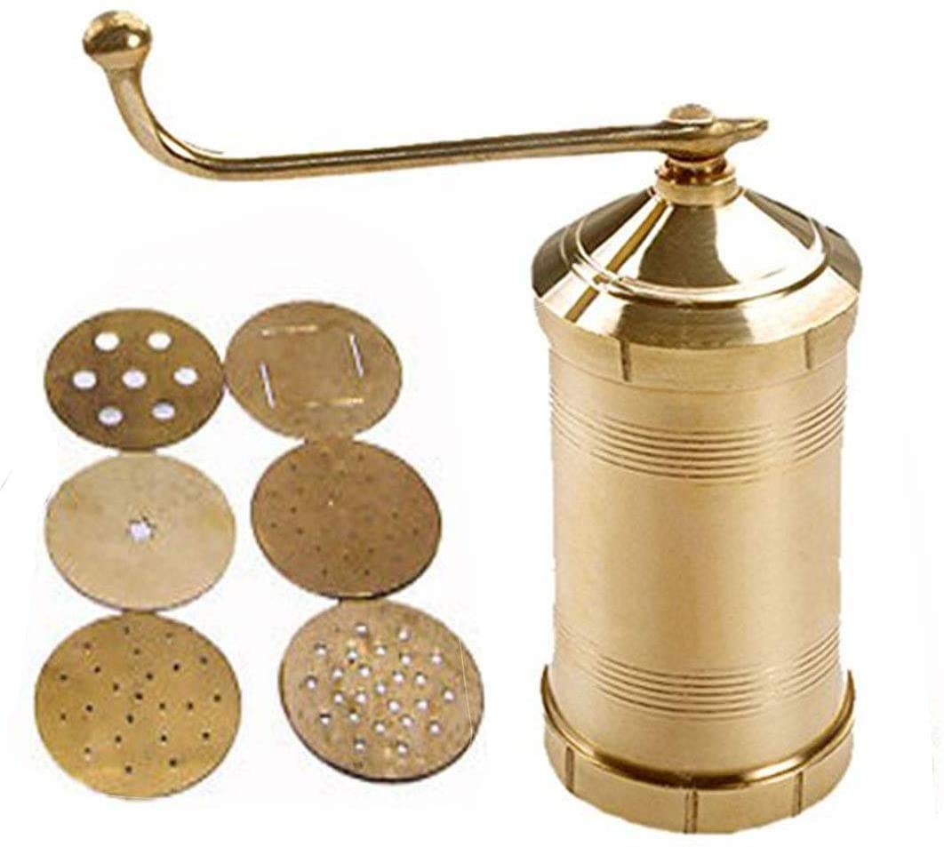 HomeKitchenKitchen ToolsManual Pasta MachinesSahishnu Online And Marketing Sev Sancha Pasta Maker,Murkul Maker, Manual Pasta Maker,Shev Maker, Gathiya Murukulu Janthikulu Maker Machine With 6 Different Jali - Brass