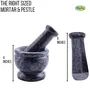 This grand KIPIQ granite mortar & pestle is appealing enough to be a permanent fixture on your kitchen counter. The granite pestle is heavy for its size allowing for thorough pulverization of tough peppercorns or coriander seeds without breaking a sweat.