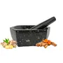 SIKKI CRAFT Hexagonal Mortar/kharal/Okhali & Pestle Made of Natural Stone Granite and Used for Grinding Herbs and Spices 15 cm Long