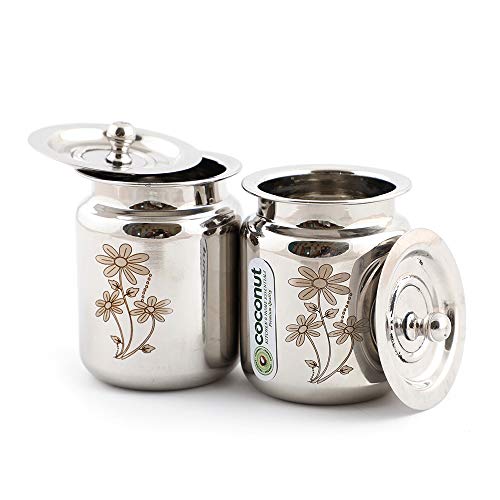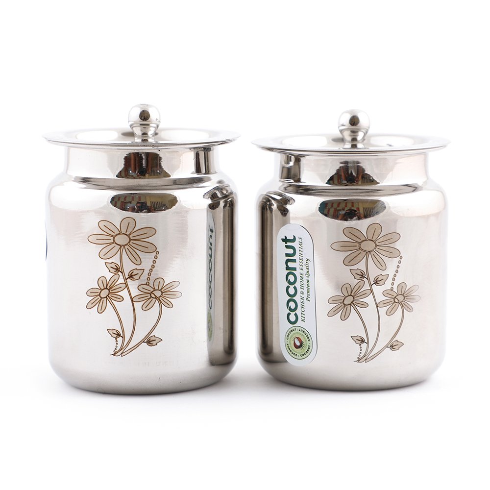 Coconut Stainless Steel Laser Ghee Pot/Oil Pot/Pickle Pot - 2 Pc (Capacity - 600 ML Each) - Size 4
