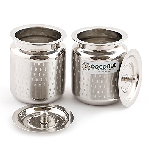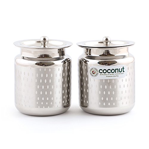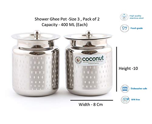 Coconut Stainless Steel Shower Ghee Pot/Oil Pot/Pickle Pot - 2 Pc (400 ML Each) - Size 3