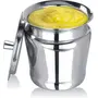 Food grade stainless steel and strong and sturdy built, Unique, stylish and elegant design and looks. Comes with lid and it is Rust, crack and stain proof, Crafted from quality stainless steel, Dishwasher and freezer safe.This is a small stainless steel jars specially designed for you to store oil and ghee. The set is complete with spoons to scoop out the contents in jar. Highly durable : The items in this set are made crafted from stainless steel and the apple shape gives it an authentic and rich look. It can also be used to store oil, pickle, chutney etc.The product comes with a stainless steel lid and a spoon to serve the content.New Great way to store as well as use oil in daily life. Made up of stainless steel having high quality see through lid on top. The structure is made in such a way that there is very less cleaning required and hence very easy to use and clean.It also has air tight ring so as to avoid spillage.Capacity:- Oil Dropper:- 500 ml, Ghee Pot:- 300 ml size : Oil dropper:- 6.5x6.5x24.5 cm, Ghee pot:- 6x6x9 cm.