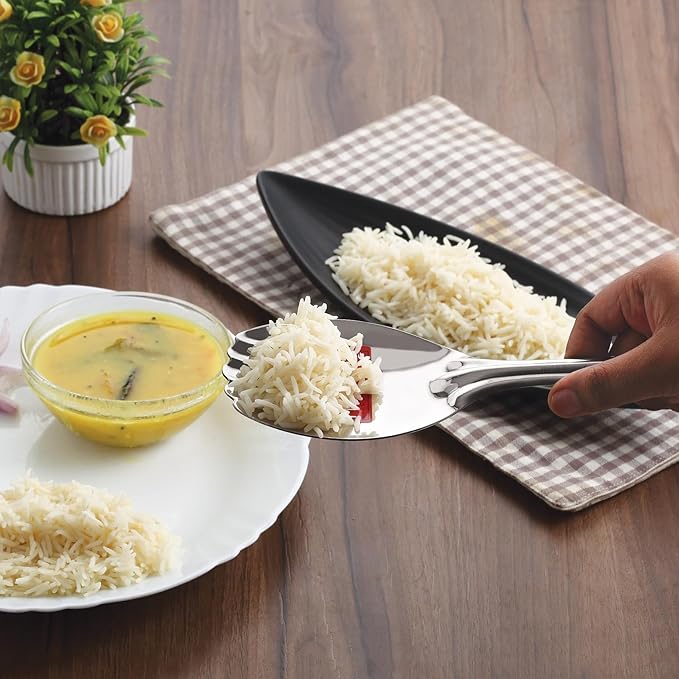 These stainless steel spoons add elegance and class to your table. Made of high-quality stainless steel, this rice spoon is durable, rust-resistant, and sturdy.