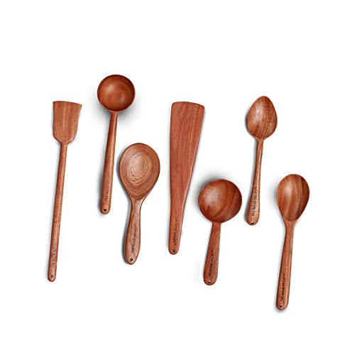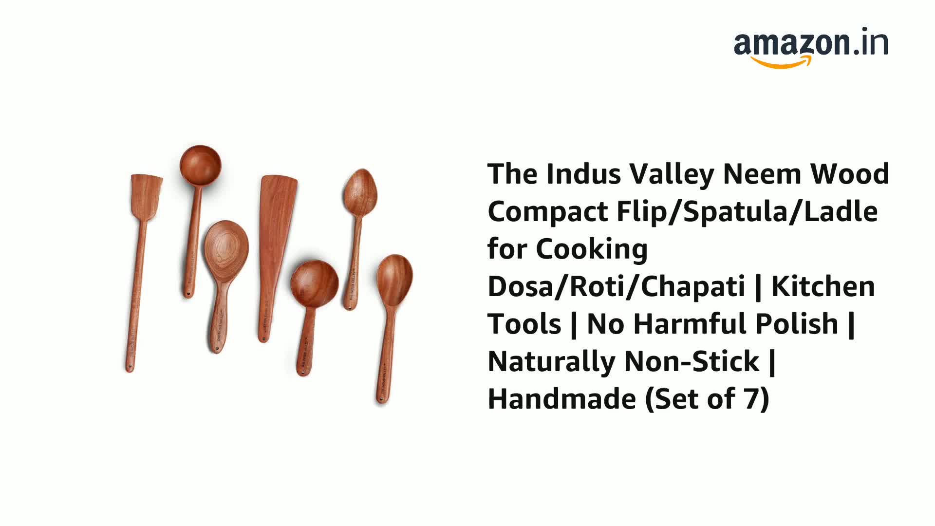 The Indus Valley Neem Wood Compact Flip/Spatula/Ladle for Cooking Dosa/Roti/Chapati | Kitchen Tools | No Harmful Polish | Naturally Non-Stick | Handmade (Set of 7)