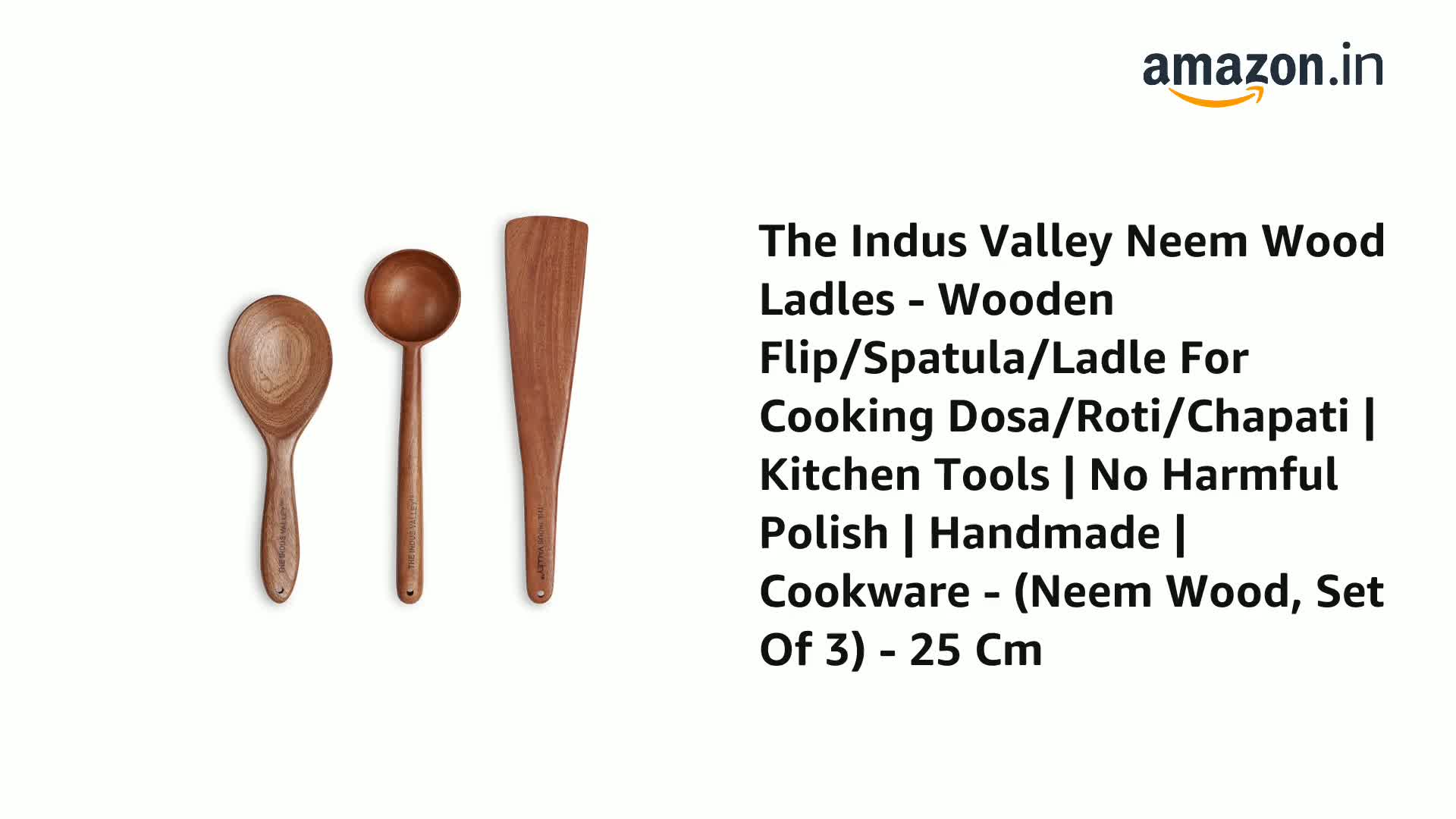 HomeKitchenKitchen ToolsSpatulasThe Indus Valley Neem Wood Ladles - Wooden Flip/Spatula/Ladle For Cooking Dosa/Roti/Chapati | Kitchen Tools | No Harmful Polish | Handmade | Cookware - (Neem Wood, Set Of 3) - 25 Cm