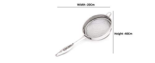 Coconut is a range of Innovative and products for Home and Kitchen Utilities. These Strainers are Multipurpose in use it can be used for Straining Juice Milk Tea Coffee Soup Sauce Vegetables and other liquid items. And if you need to sift through not only juice but it can also be used for Dry ingredients. The Strainer are made from 304 Grade Stainless Steel Wire Mesh they are Dishwasher safe rust crack and Stain Resistant. This Strainer has Hanger Hole in its Handle for hanging on hooks. It has a Elegant design with easy to use handle. This product is of durable and which will extend its lifespan and make it worth purchasing for your kitchen & Home essentials. Product content: SS Juice Strainers No.4 1 Quantity Dimension Width - 20Cm Height 40Cm . Colour- Silver Material Stainless Steel.