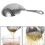 Professional Grade All-Stainless Steel Julep Strainer important companion for any craft cocktail bartender or classic drink lover, the Julep Strainer is designed to filter ice shards from stirred cocktails and give you a deliciously smooth and ice-free cocktail. DURABLE STAINLESS STEEL: Made with high grade stainless steel , this strainer is designed to hold up to frequent straining - even behind even the busiest cocktail bar. Will not break, bend, or rust. Dishwasher Safe. COMFORTABLE HANDLE: Rounded edges and handy hole cut-out let you strain comfortable and then hang the strainer to be ready for the next time it's needed. VERSATILE AND COMPATIBLE: Standard-size oval-shaped strainer fits most mixing glasses, cocktail shakers and pint glasses. Use it to strain any cocktail, avoiding drips and leaks. The Julep Strainer is for so much more than juleps - it's a vital tool for any professional bar, aspiring bartender, or home cocktail bar.
