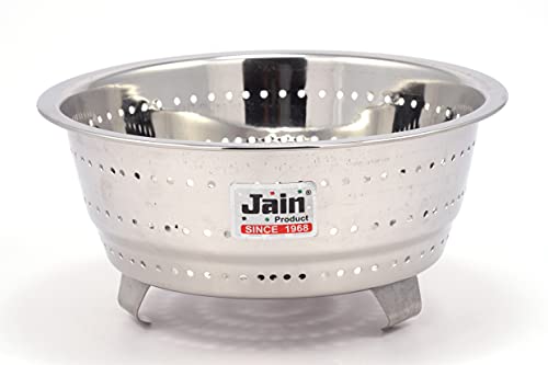 JAIN has range of innovative and quality products for your Home and Kitchen needs. Italian Stainless Steel Strainer is made of premium Quality Stainless Steel material and is of food grade. This is ideally used in Kitchen for draining Fruits Vegetables Grains Pastas Noodles and other foods. This Colander is an essential for kitchenware collections for quick and easy cook.