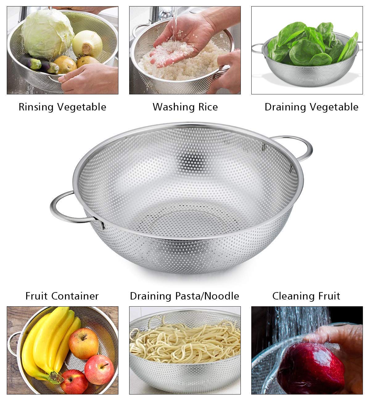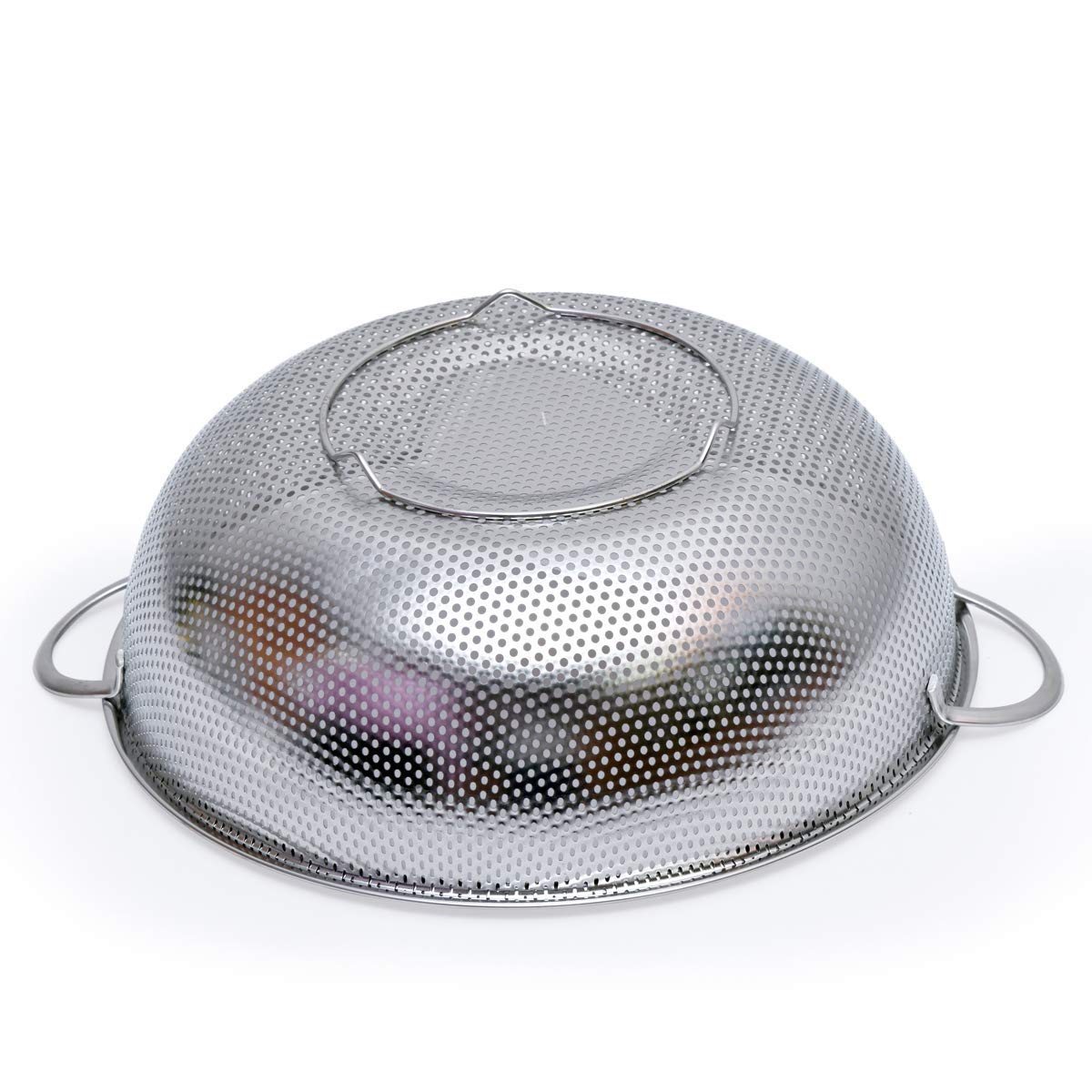 Small and closely spaced holes on every surface of every perforated colander great for draining fast and the food wont be clogged up or slid out.