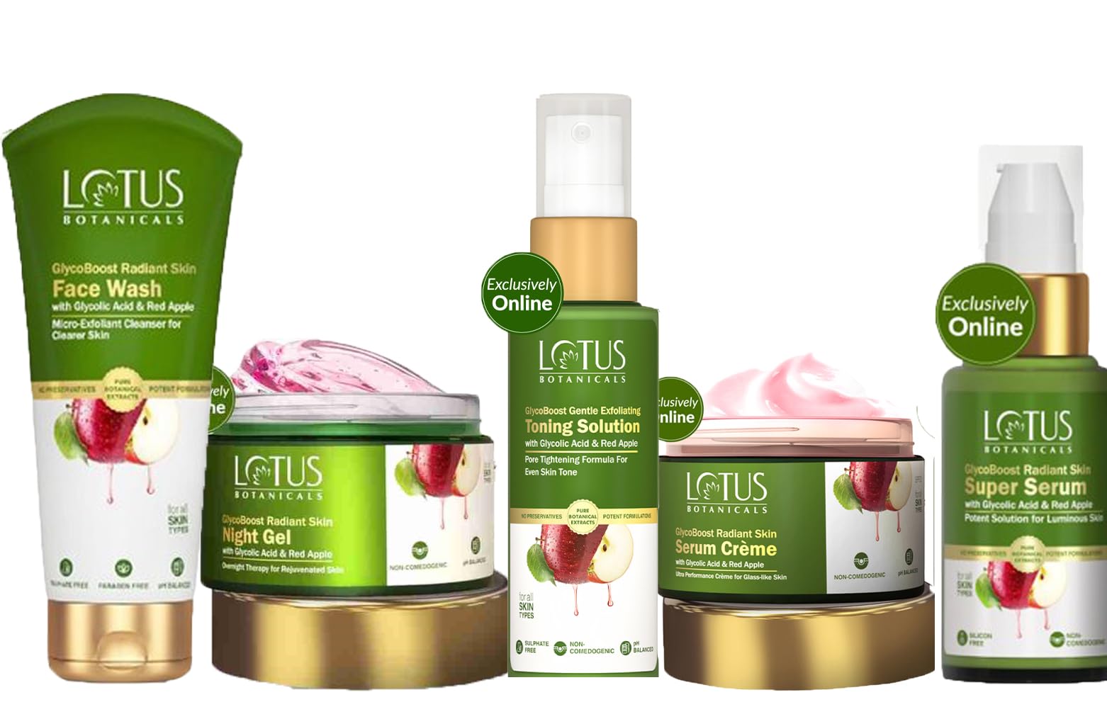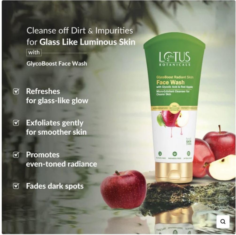 Unlock the secret to radiant glowing skin with the Lotus Botanicals GlycoBoost Serum Cream_50g + Night Gel_50g + Face Wash_100g + Face Serum_30ml + Toning Solution_50ml (Set of 5). This comprehensive skincare routine is designed to nourish and revitalise your complexion from morning to night. The serum cream packed with glycolic acid gently exfoliates and brightens while the night gel works overnight to repair and replenish. The face wash deeply cleanses the face serum hydrates and firms and the toning solution restores your skin's natural pH balance. With this luxurious set you'll experience a transformative skincare journey that leaves your skin looking and feeling its absolute best. Indulge in the power of nature's finest ingredients and unveil a radiant youthful glow.