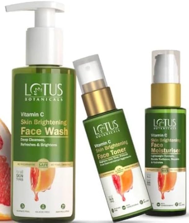 • Lotus Botanicals Vitamin C CTM Routine Pack. (3 Items in the set)- Face wash_180ml Toner_50ml Moisturiser_45ml