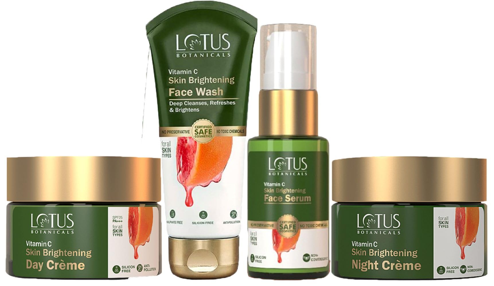 Lotus Botanicals Vitamin-C Day Cream_50g + Night Cream_50g + Face Wash_100g + Face Serum_30ml (Set Of 4)