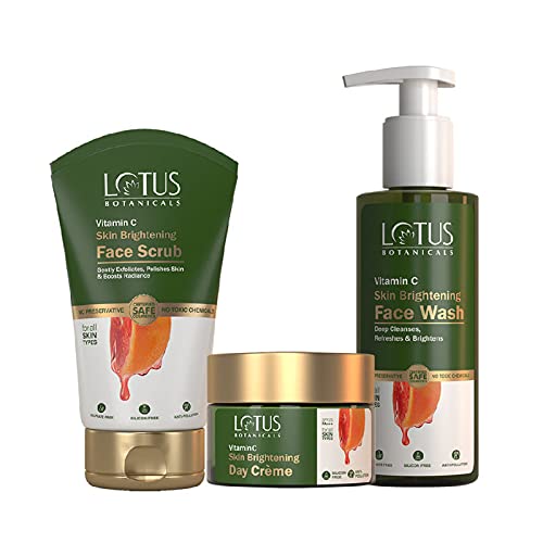 Lotus Botanicals Wash & Glow Combo | Vitamin C | Face Wash | Face Scrub | Brightening Day Cream Moisturiser | 3 Product Combo