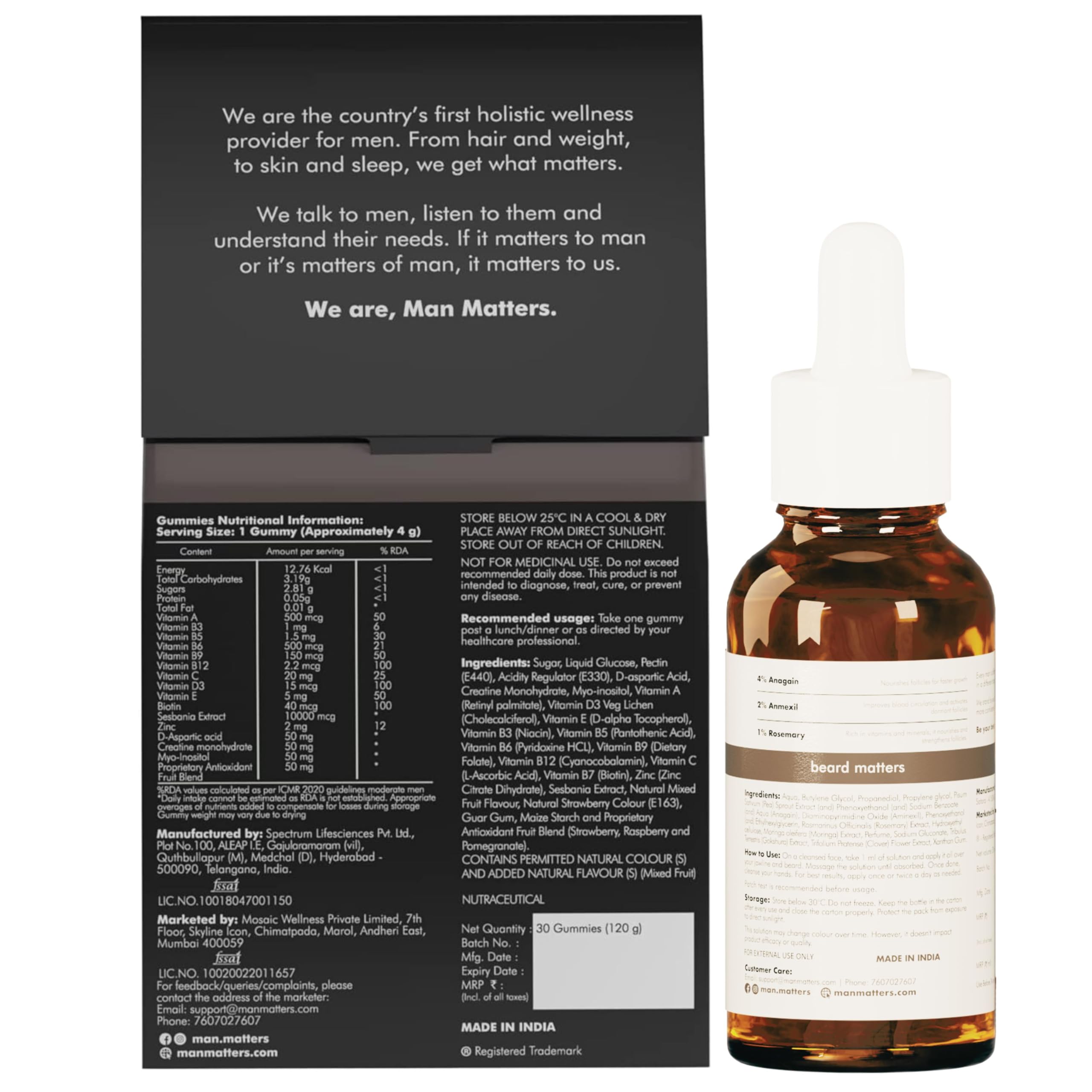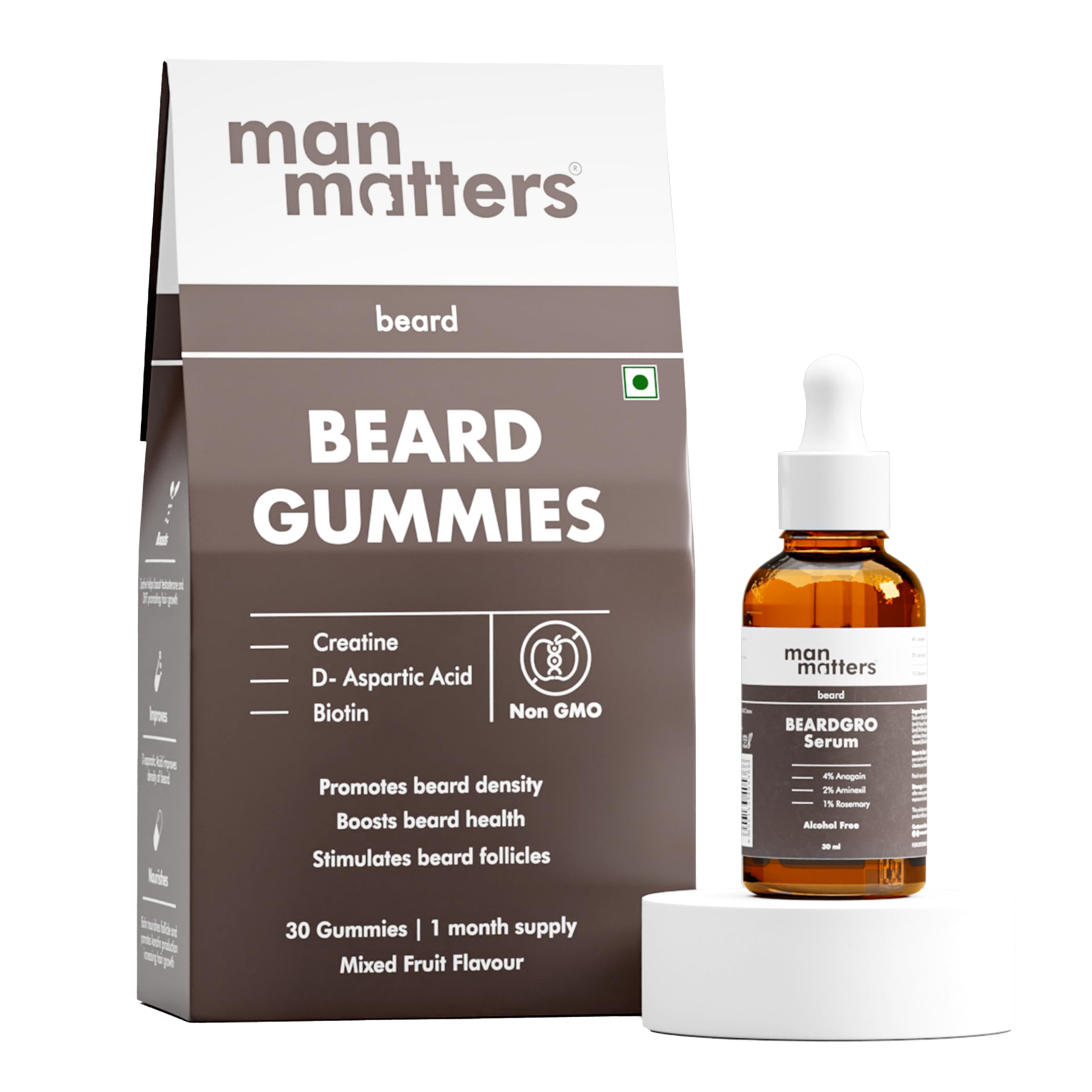 Man Matters BeardGro Oil-In-Serum With Beard Gummies 30N | Anagain Aminexil & Rosemary | Biotin & Creatine | Reactivates Hair Cells Improves Beard Density & Promotes Thicker Growth