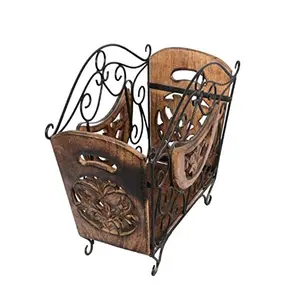Wooden & Iron Magazine Holder with...