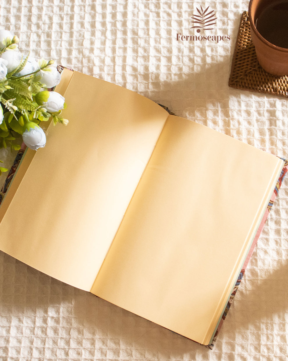 Introducing our latest collection of upcycled diaries, crafted from leftover dress cloth that has been given a new lease of life! Made from beautiful, handmade block-printed fabric, these diaries are not only stylish and unique, but also eco-friendly.It consists of handmade paper pages, which have been carefully crafted to provide a smooth writing surface, making it the perfect companion for your notes and ideas.