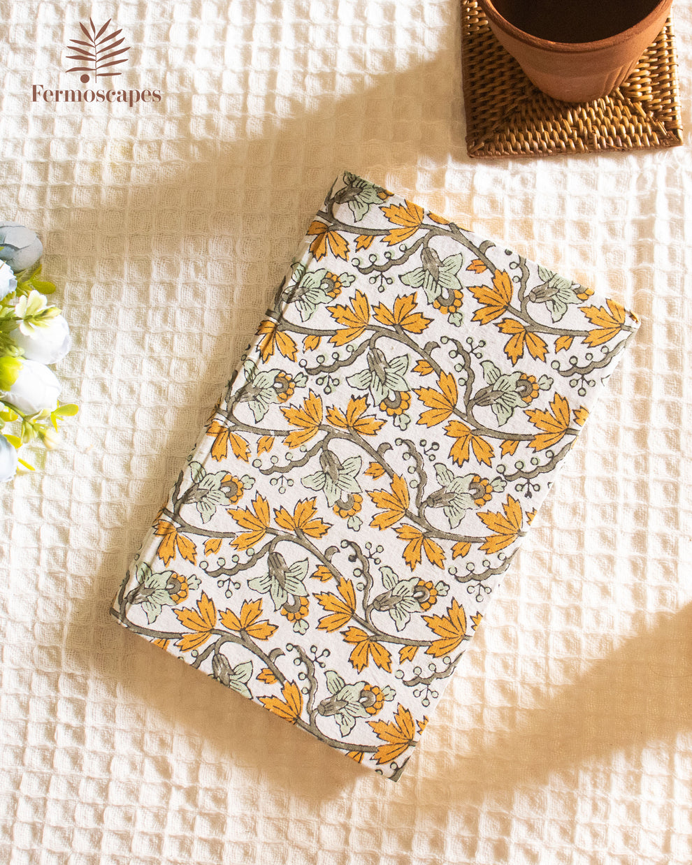 Fermoscapes Handmade block printed diary- Yellow and white floral