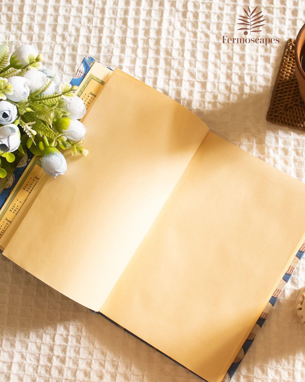 Introducing our latest collection of upcycled diaries, crafted from leftover dress cloth that has been given a new lease of life! Made from beautiful, handmade block-printed fabric, these diaries are not only stylish and unique, but also eco-friendly.It consists of handmade paper pages, which have been carefully crafted to provide a smooth writing surface, making it the perfect companion for your notes and ideas.