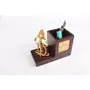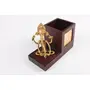 Give your desk an ethnic makeover with this Ganpati pen stand. While the pen stand is made of fine wood, a small platform alongside mounts a beautifully crafted figurine of Lord Ganesha. Heres to prosperous times ahead!Disclaimer: Given that this product is handmade and intricately designed; there may be slight variations in the product. Such variations are inherent in the manufacturing of handmade products.