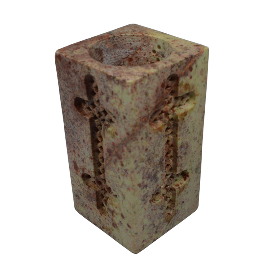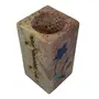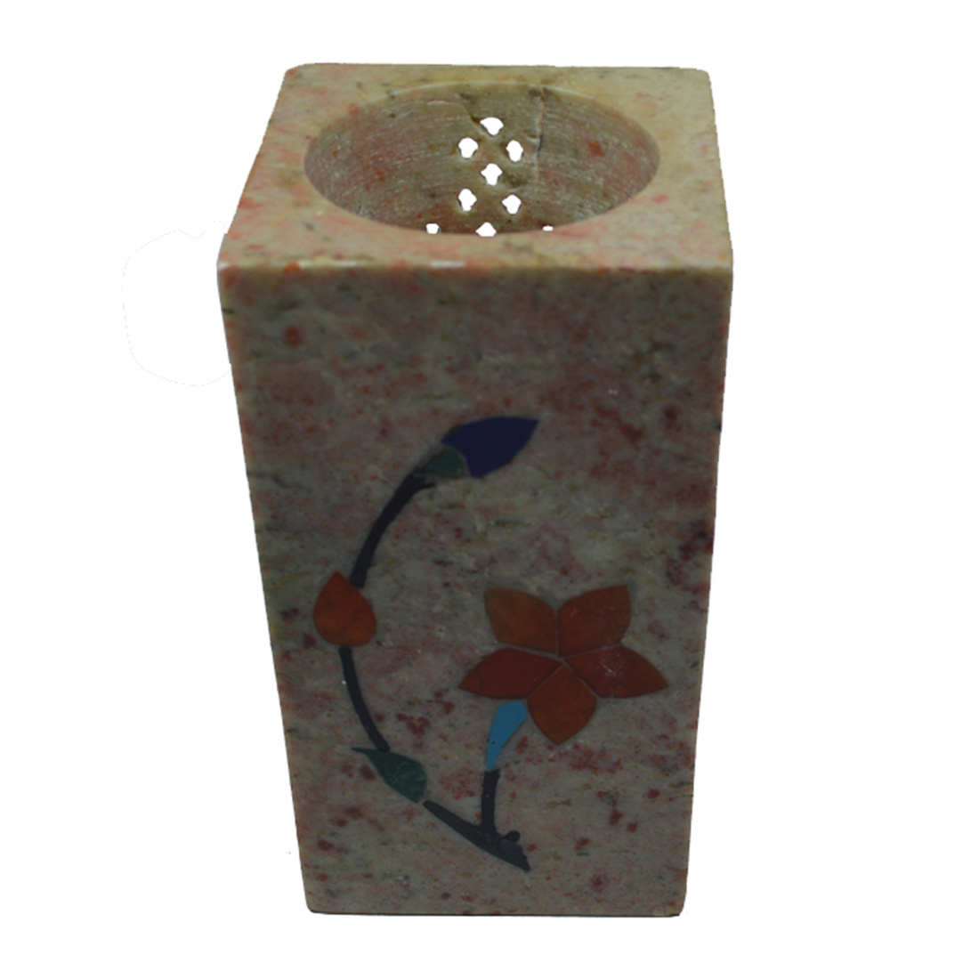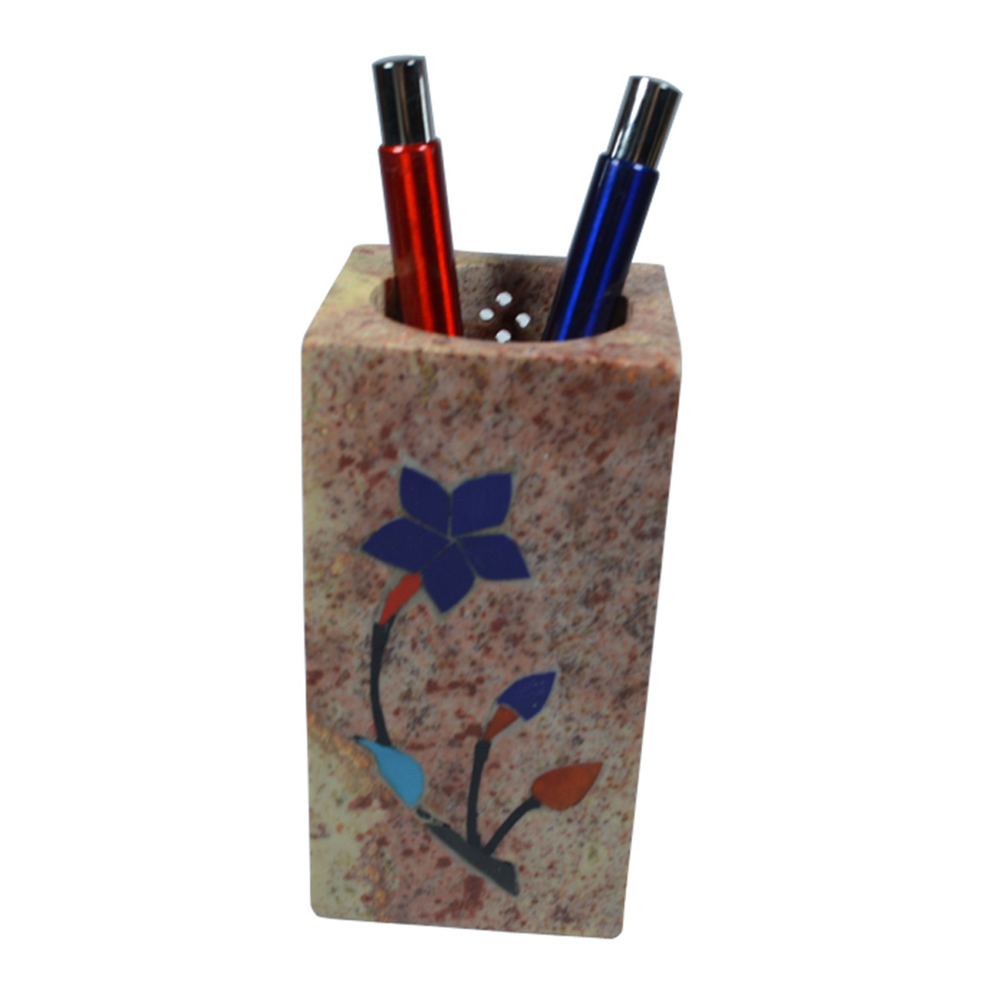 Silkrute Handcrafted Square Soapstone Pen Stand With Floral Inlay & Carving