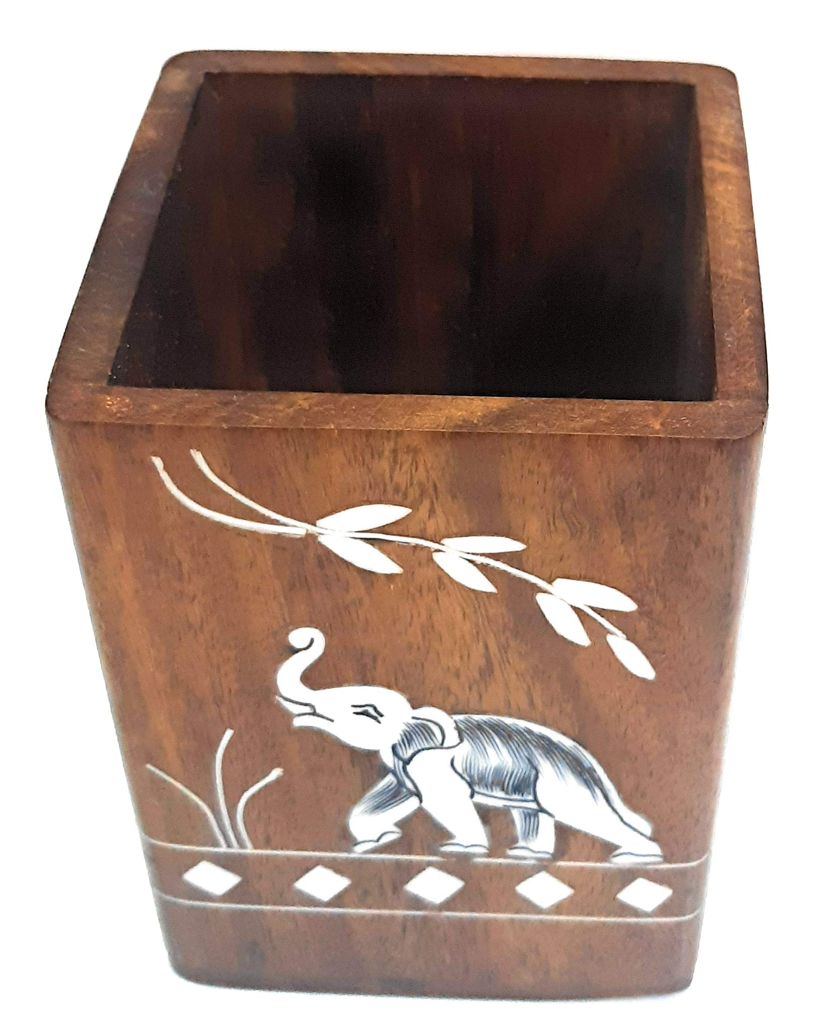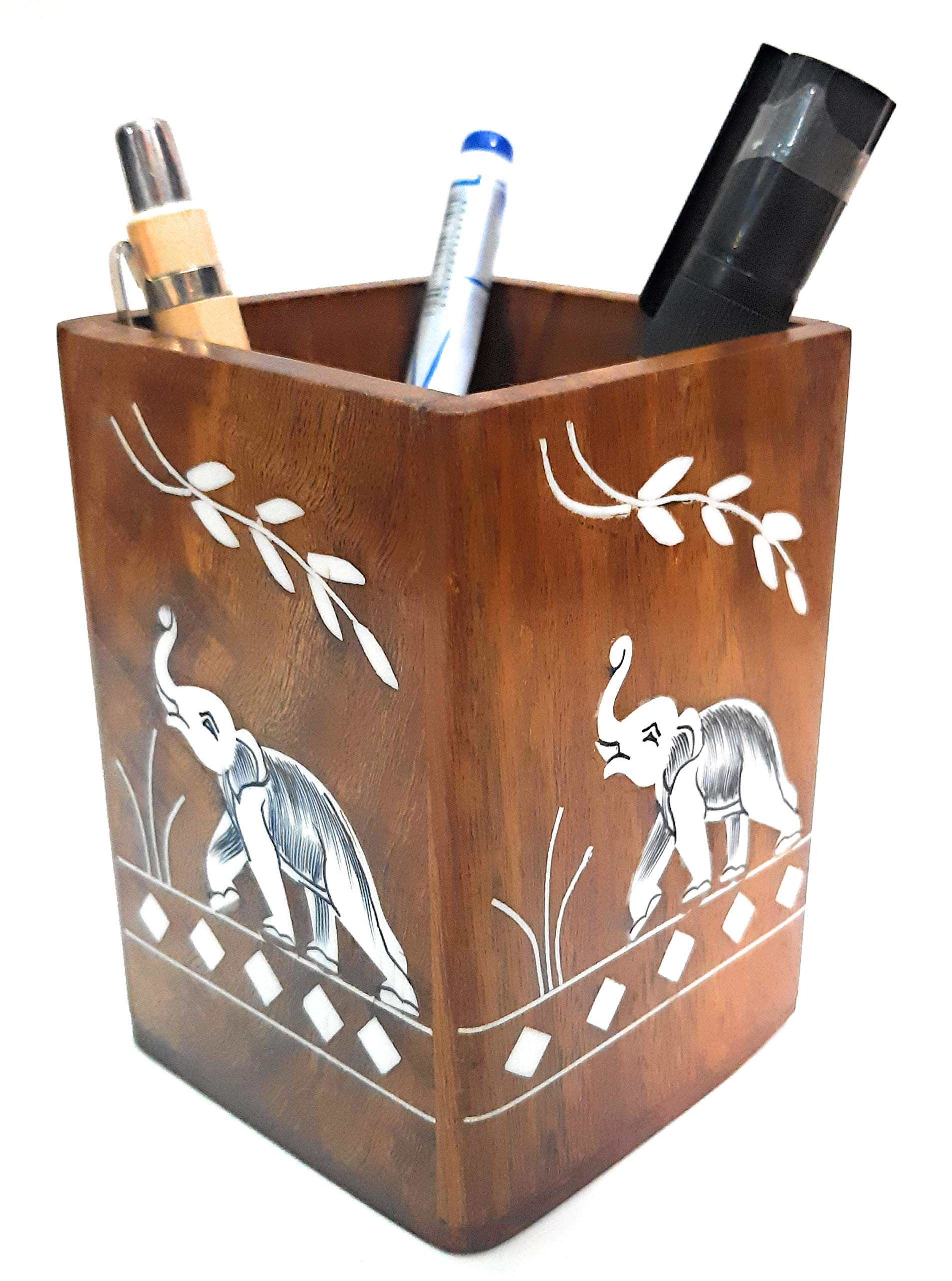 Handmade Wooden Pen Stand Perfect for Office & Home Desk to Organize your pens pencil Gift for Christmas or Birthday MADE & MAKE IN INDIA: This pen holder is made in India with the finest of Indian Sheesham Hard Wood (Rosewood) by craftsmenship of rural artists PERFECT COMPACT SIZE: This office pen & pensil holder is 4 inch in height 3 inch in length & 3 inch in breath HOLDS YOUR FAVORITE PENS AND MORE: This pen holder is large enough to hold large pens sharpies markers scissors fountain pens pencils letter openers and many other desk widgets perfect office desk organizer YOUR OFFICE COMPANION: A perfect addition to your home office work office and mancave the pen holder is the perfect office accessory and gift. STAY ORGANIZED: Easy to stay organized and efficient when all items are stored in a slot. It is a Perfect gift for students and also gifted for women to put their makeup brushes eye liners and the other cosmetic accessories