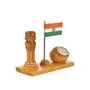 WOOD CRAFTS OF RAJASTHAN Wooden Handmade Carved Ashok stambha Pen Stand with Clock & Flag || Gift for Family & Friends Home Office Teachers Gift Thank You Gift House Warming New Year Promotion.